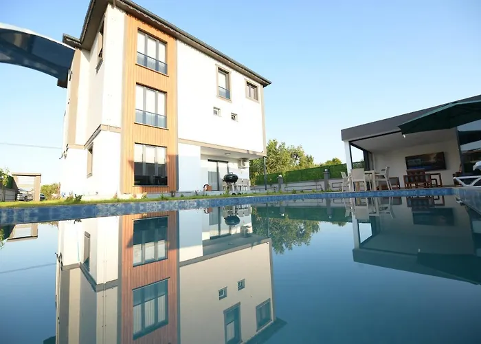 A Trabzon városi villa továbbá a medencére nyílik. A 3 hálószobás szálláshely magába foglal egy fürdőszobát walk-in zuhanykabinnal, külön WC-vel és mosdóval. Hajszárító, háziköntösök és fürdőlepedők szintén a fürdőszobai kényelem részét képezik.